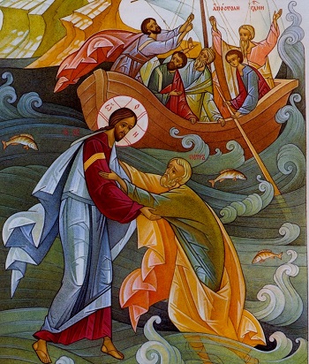 Μετὰ τὸν πολλαπλασιασμὸ τῶν πέντε ἄρτων καὶ τῶν δύο ἰχθύων στὴν ἔρημο καὶ τὸν χορτασμὸ τοῦ πλήθους, ἀναφέρεται στὸ Εὐαγγέλιο ὅτι ὁ Κύριος Ἰησοῦς «ἀνάγκασε» τοὺς μαθητές Του νὰ ἀνέβουν στὸ πλοῖο καὶ νὰ πᾶνε στὴν ἄλλη ὄχθη τῆς λίμνης, ὡσότου ἀπολύσει τοὺς ὄχλους.